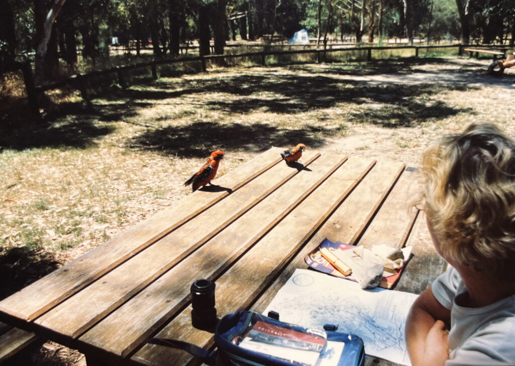 In het zuiden van Australië ligt niet ver van Melbourne nationaal park. Op onze eerste reis naar dat land maakte het park grote indruk. De rust, stilte en sterrennacht. Prachtige vogels, nauwelijks bang voor mensen. Kakatoes zaten op de rand van de tafel en bewonderden de tekeningen. Op korte afstand MacKenzie Falls en rotstekeningen van Aboriginals van meer dan vijfduizend jaar oud.