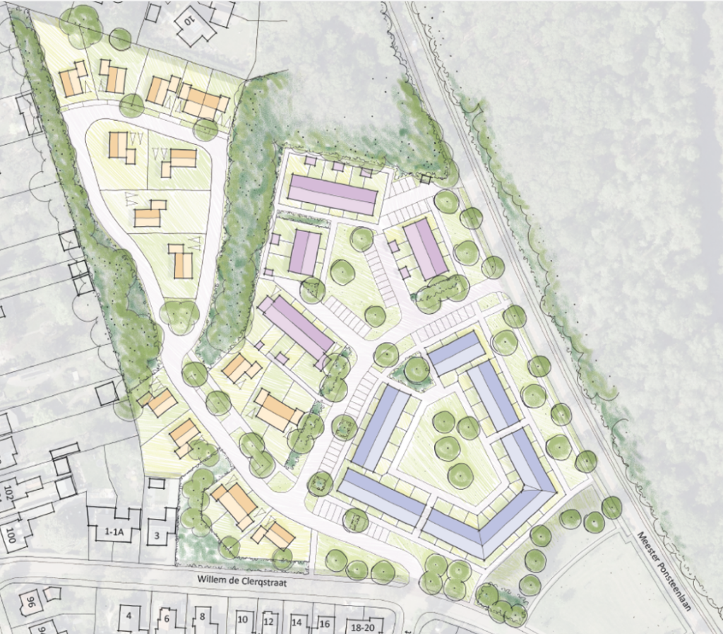 Onlangs praatte de gemeente met de omwonenden van de Reggesteynlocatie aan de Willem de Clercqstraat. Daar komt vanaf september tijdelijk de Marijkjeschool. Als die weer weg zijn, worden op die plek huizen gebouwd. In de eerste schetsen gaat het om in totaal ongeveer 60-65 huizen.