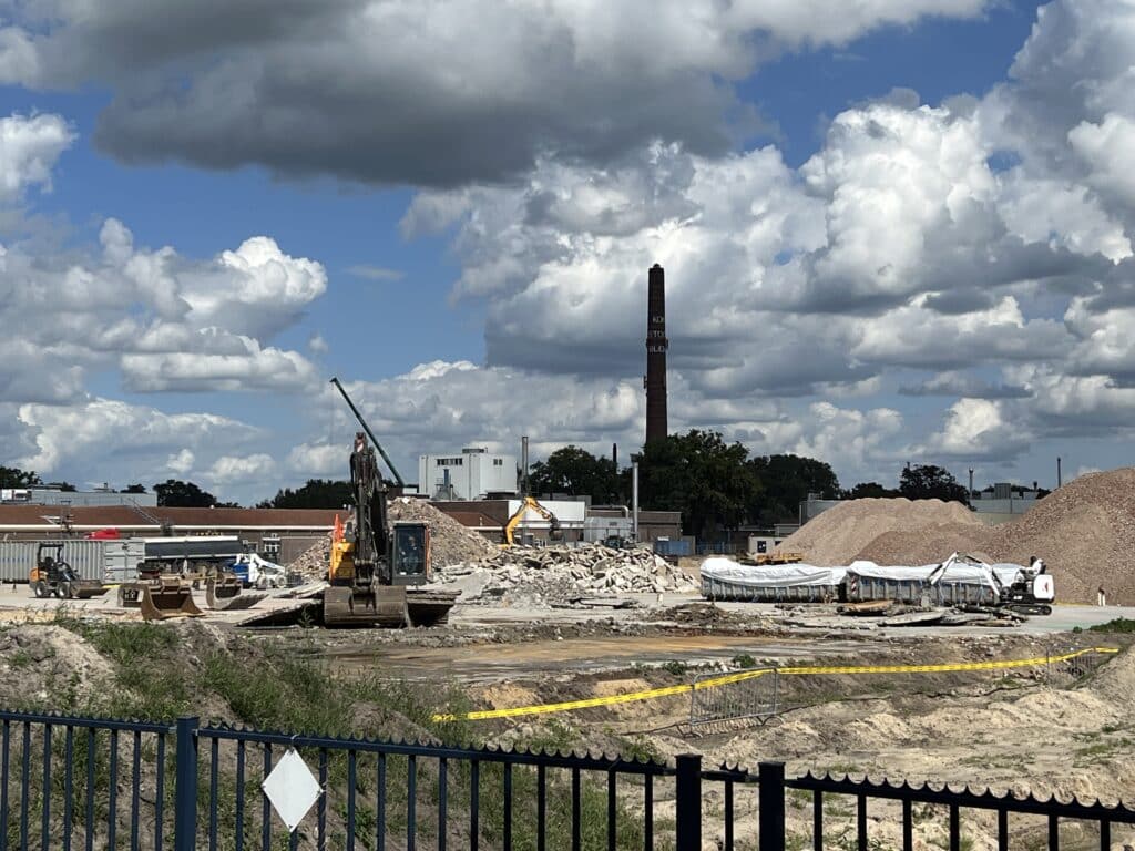 “Een groot deel van de oude panden tussen de Van der Muelenweg en de Regge is inmiddels gesloopt,” vertelt Rodijk. “Dat is niet te missen als je er langsrijdt. Hier verrijst straks een hypermoderne fabriek van 45.000 m², die bijna volledig op zonne-energie draait.”