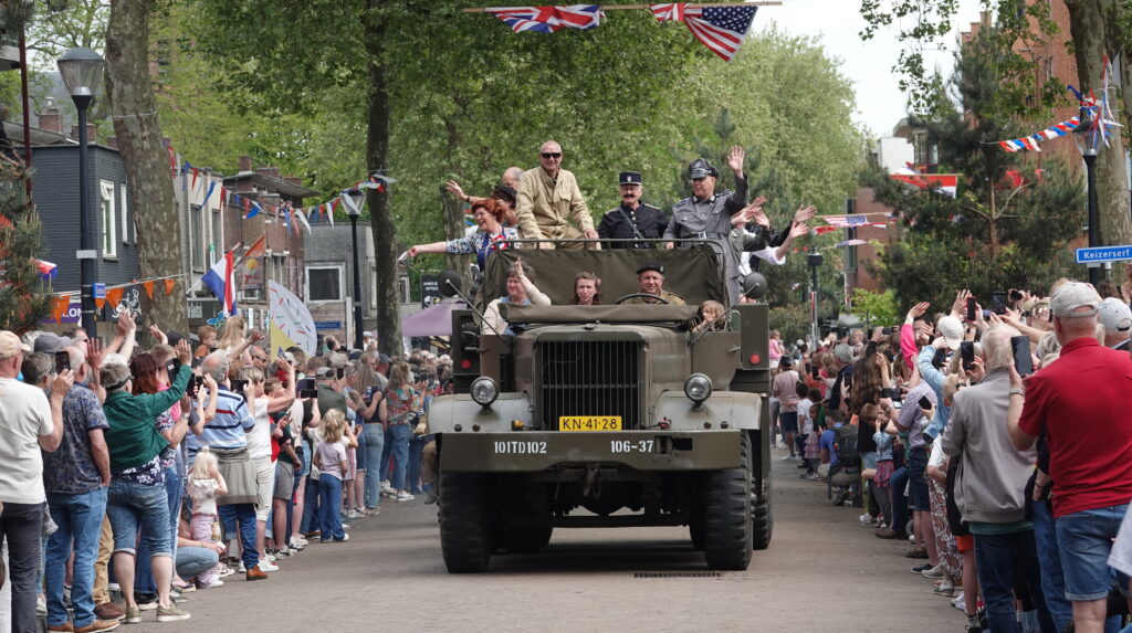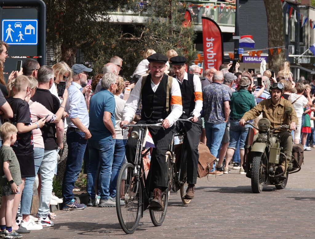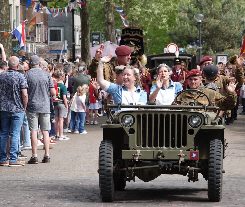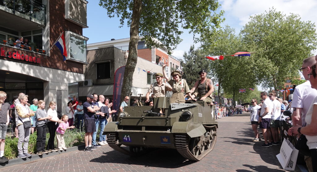 De stoet voertuigen was al de hele dag op weg. Voor een paar was dat net genoeg. In het defilé, zaten ze vastgebonden aan een andere auto. Het mocht de pret niet deren. Als ‘echte’ bevrijders reden de auto’s en tanks door het dorp, luid toegejuicht door de bezoekers. Een mooi evenement.