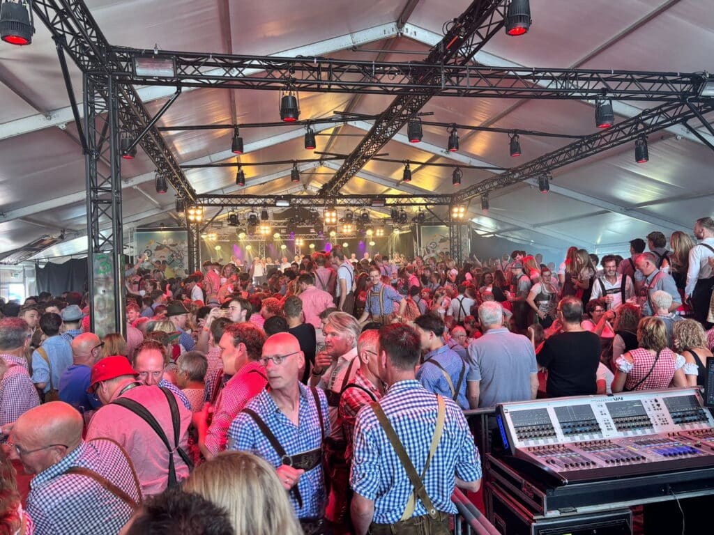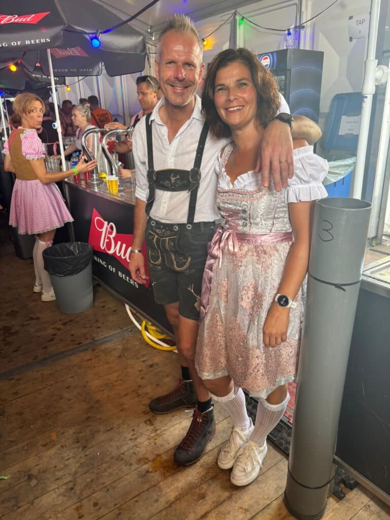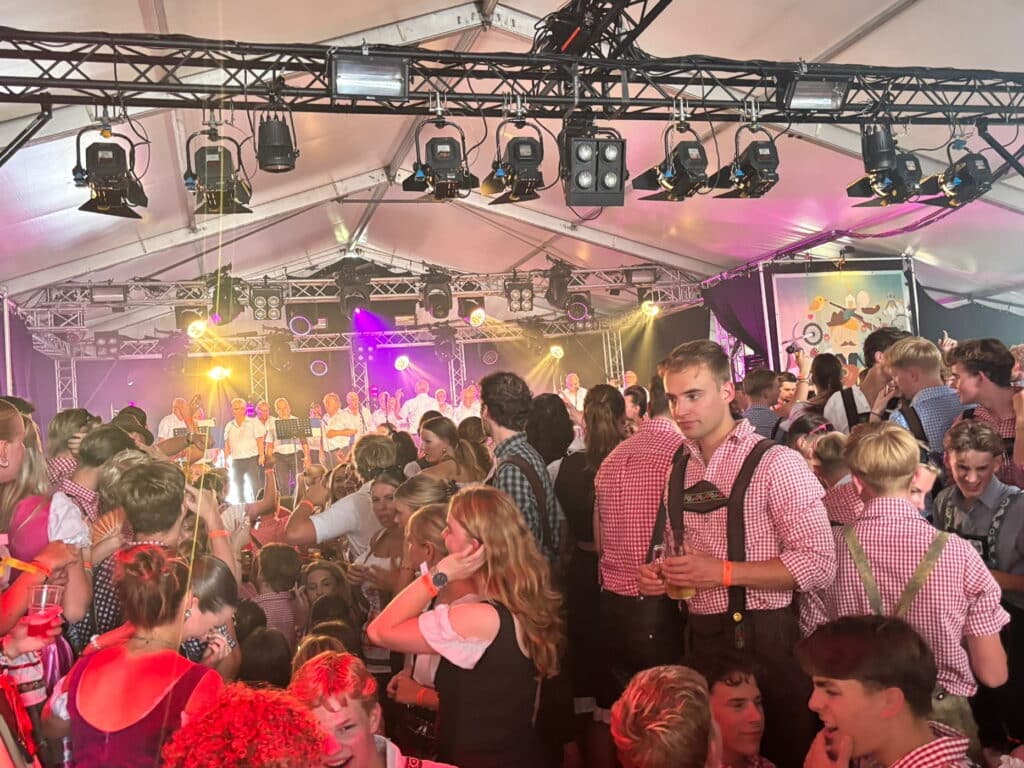 Van heinde en verre was men in de loop van de middag naar het moederdorp getrokken. Lederhose aan of dirndeljurk; alle fietspaden in en rond het dorp leken ineens in Tirol te liggen. De tent was nokkievol en de stemming meer dan best. Op de dansvloer was burgemeester Eijbersen gemakkelijk te herkennen. Geen Tiroler pakje. Wel een skibril.