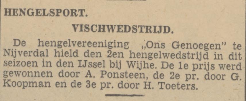 - Kampioen: jeugdlid Wout Leushuis (Hellendoorn) won in december 2024 het Open Nederlandse Kampioenschap feeder vissen (U20)